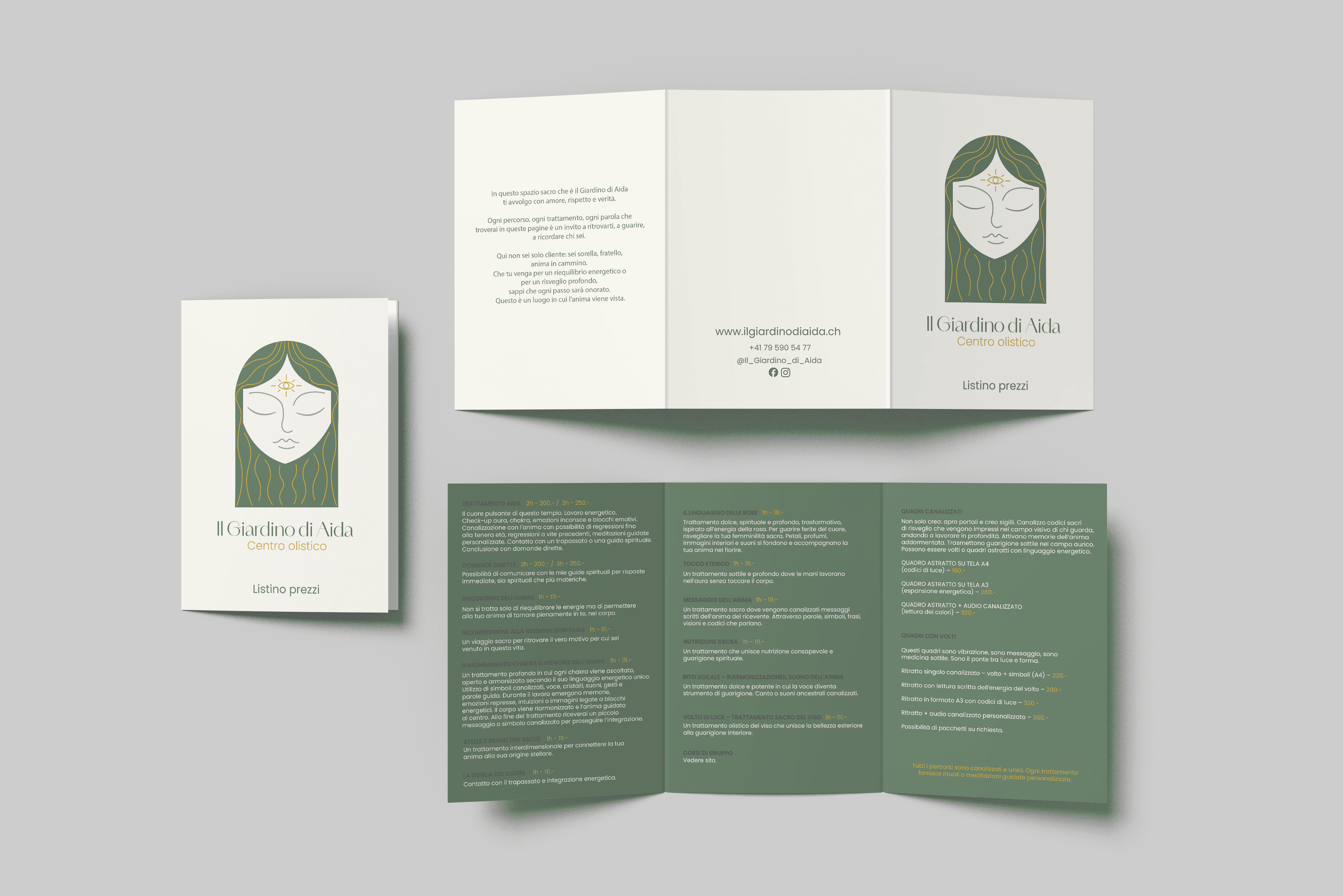For Il Giardino di Aida, I designed the business cards, gift cards, and price lists. I personally place great importance on printed materials such as these, as I believe they play a key role in conveying the right feeling and perception of a brand.
